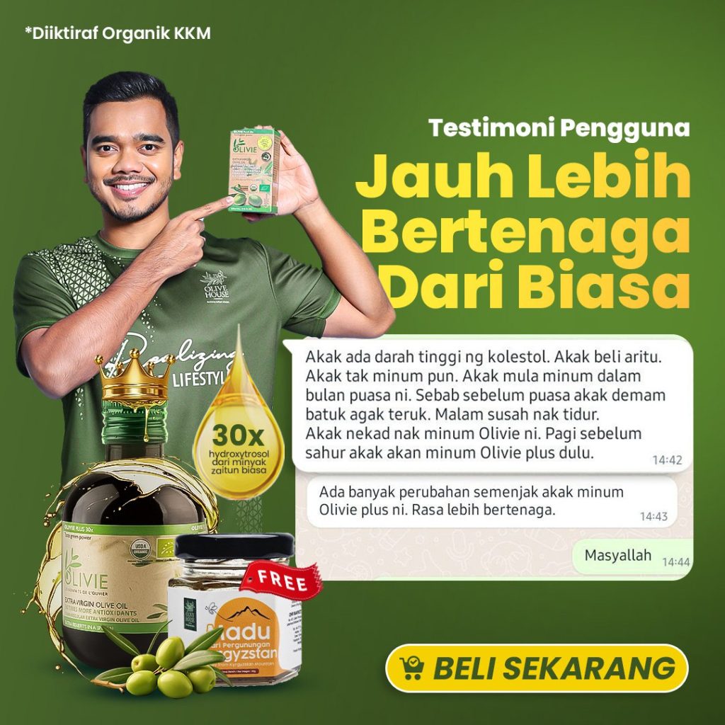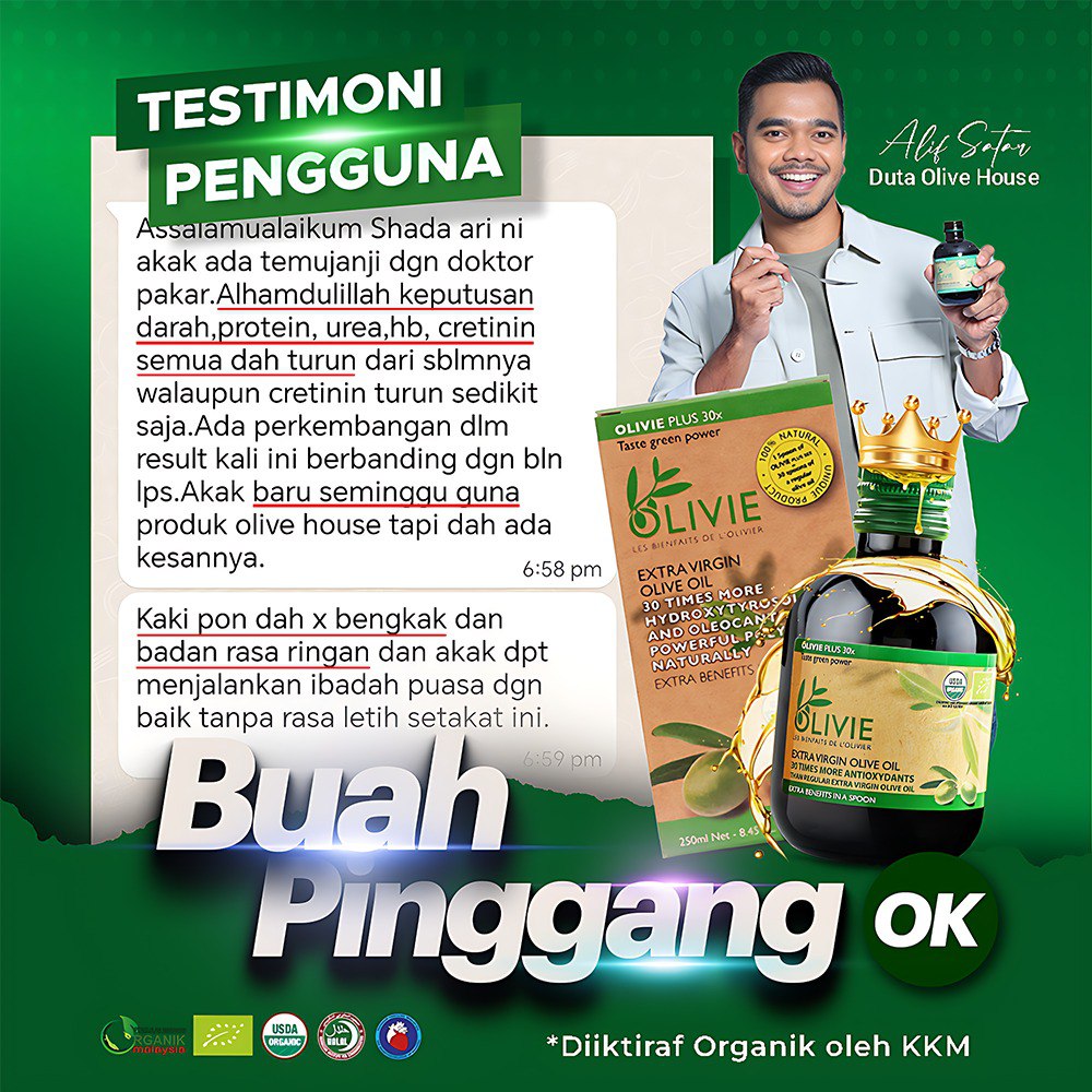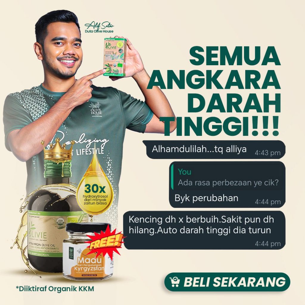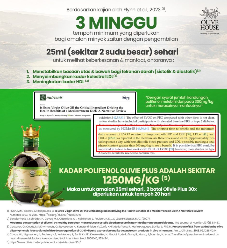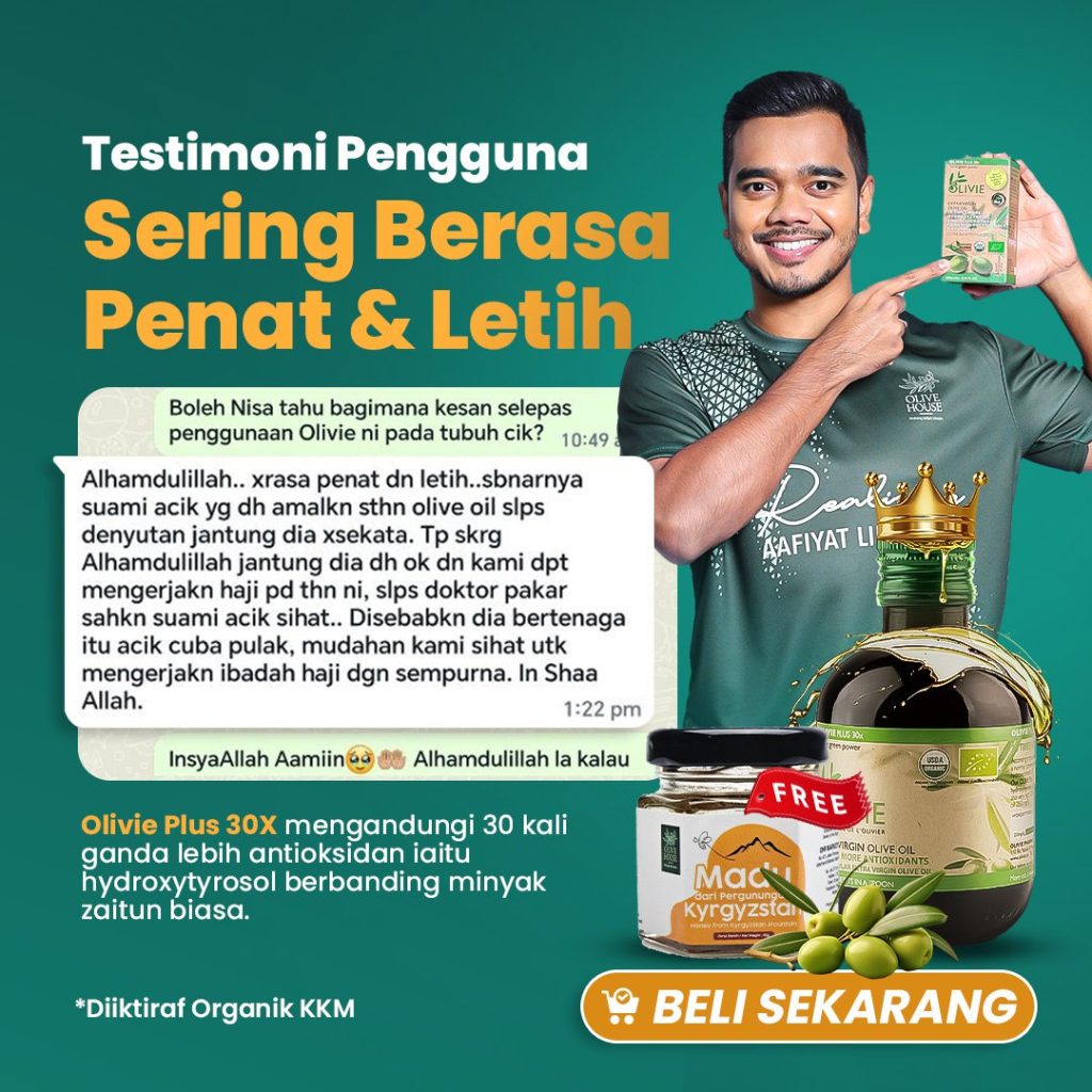 1 SUDU BESAR OLIVIE PLUS 30X MENGANDUNGI 30 KALI GANDA HYDROXYTYROSOL BERBANDING MINYAK ZAITUN BIASA